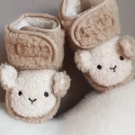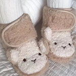 Leuke beige cartoon comfortabele schapen slofjes voor zowel jongens als meisjes, zachte warme plus fleece slofjes je kindje zal lekker zonder koude voetjes het huis rond lopen .De sloffjes kun je aan doen in de...