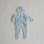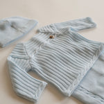 Verwelkom de herfst en winter met warmte en stijl met ons Baby setje & Muts, een onmisbare toevoeging aan de garderobe van jouw kleintje. Dit 3-delige setje in een prachtige Beige kleur is ontworpen om je baby comfortabel te houden tijdens koudere seizoenen, maar is veelzijdig genoeg om het hele jaar door te dragen.Het Baby setje is handgemaakt.