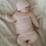 Verwelkom de herfst en winter met warmte en stijl met ons Baby setje & Muts, een onmisbare toevoeging aan de garderobe van jouw kleintje. Dit 3-delige setje in een prachtige Nud kleur is ontworpen om je baby comfortabel te houden tijdens koudere seizoenen, maar is veelzijdig genoeg om het hele jaar door te dragen.Het Baby setje is handgemaakt.